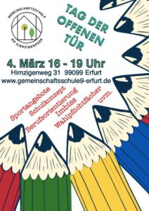 In diesem Schuljahr findet unsere Tag der offenen Tür am 04.03.2026 von 16:00 bis 19:00 Uhr statt. Neben der Möglichkeit, sich über die regulären Fächer zu informieren, bieten wir auch Einblicke in die Besonderheiten unserer Schule. Wir haben z.B. ein beeindruckendes Angebot zum Thema Berufsorientierung, ein schulinternes Wahlpflichtfach „Lebenskunde“, ein „Grünes Klassenzimmer“ und vieles Anderes mehr. Für das leibliche Wohl sorgt unsere Schülerfirma in unserem Schülerkiosk. Kommen Sie vorbei! Wir freuen uns auf Sie!